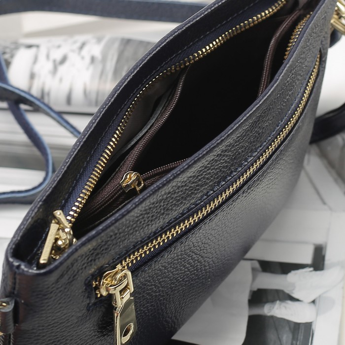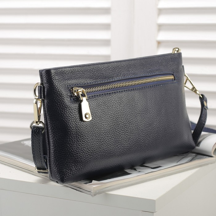 Клатч женский, 1 отдел с перегородкой, 2 наружных кармана, ручка, длинный ремень, цвет синий