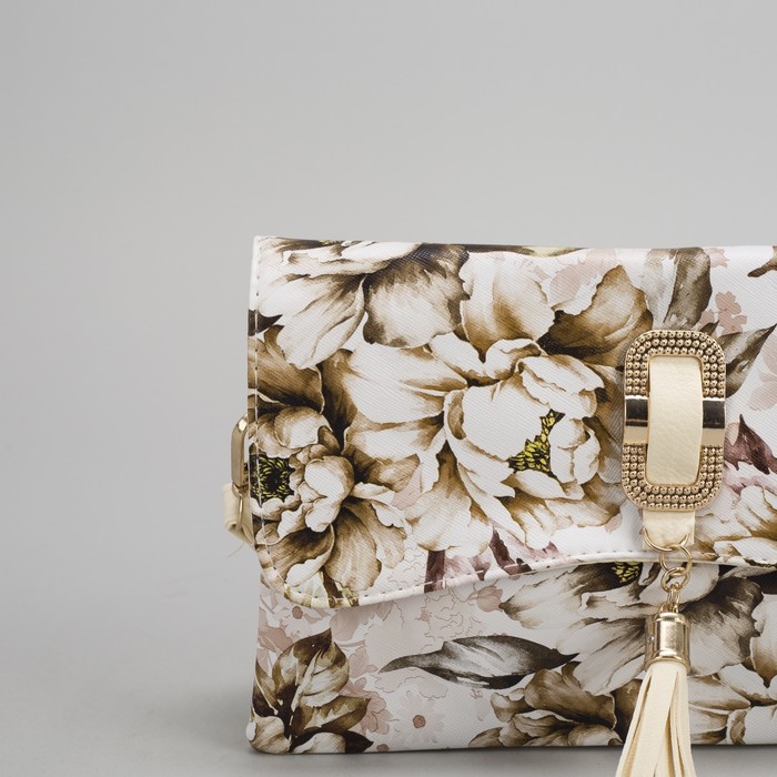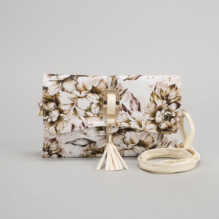 Клатч женский, 3 отдела на молнии, длинный ремень, цвет бежевый