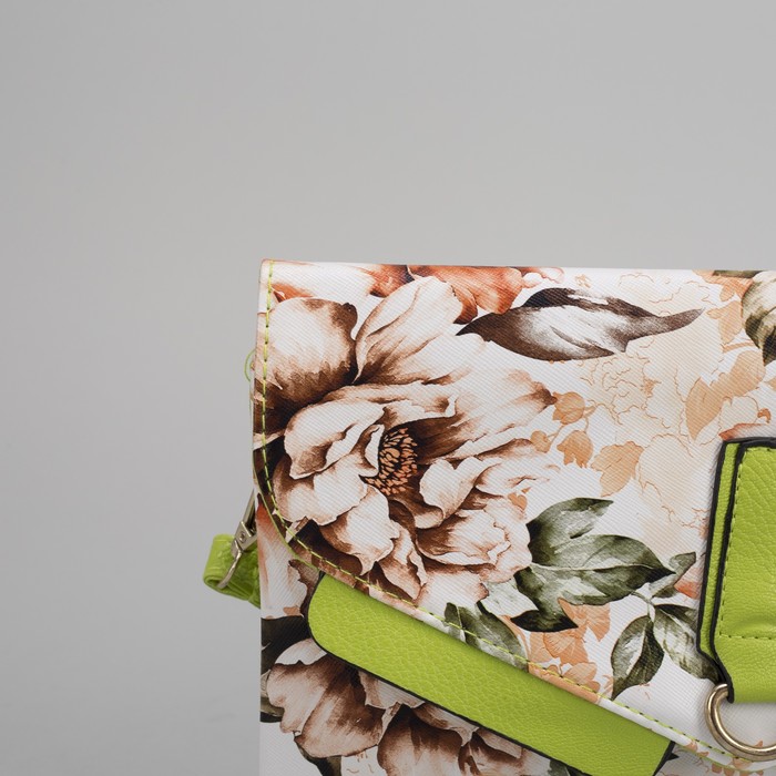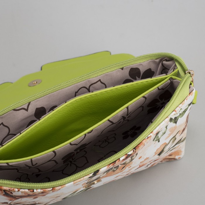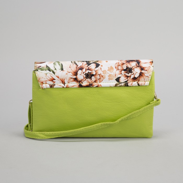 Клатч женский, 3 отдела на молнии, наружный карман, длинный ремень, цвет зелёный