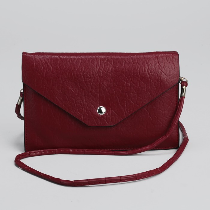 Клатч женский на клапане "Классика", 3 отдела, длинный ремень, красный