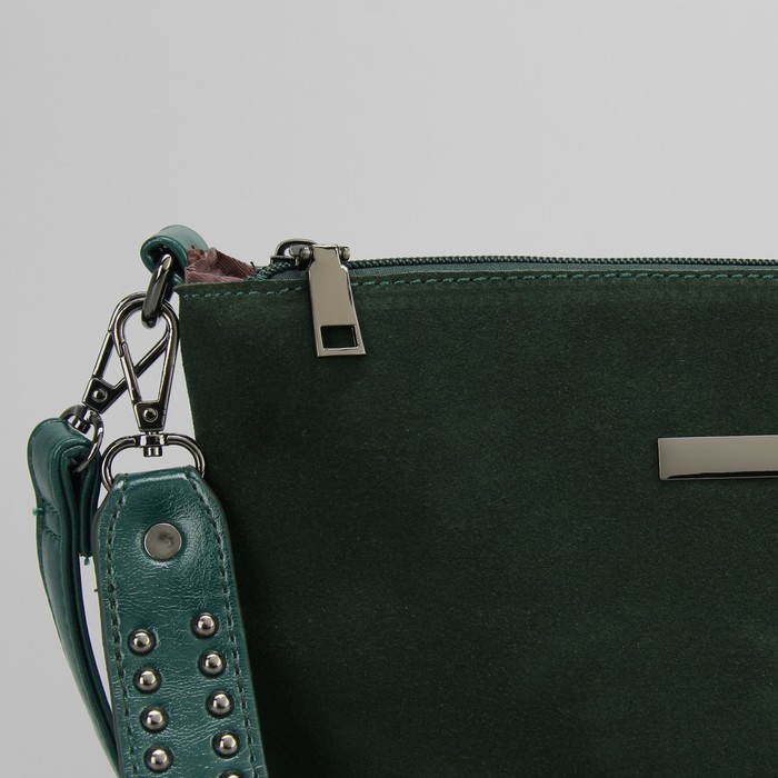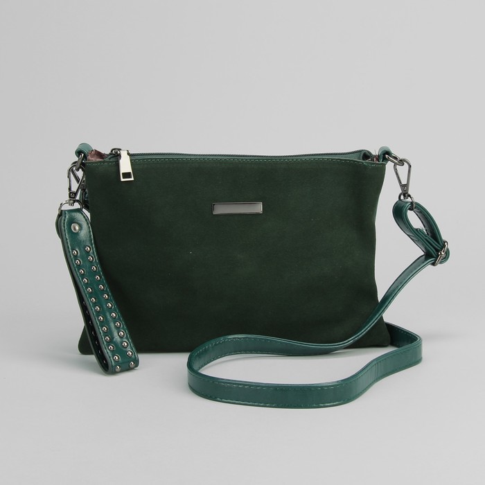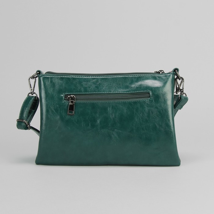 Клатч женский на молнии, 1 отдел, наружный карман, с ручкой, длинный ремень, цвет зеленый