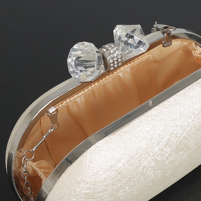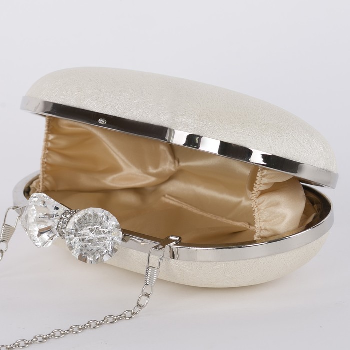 Клатч женский, отдел на фермуаре, длинная цепь, цвет белый