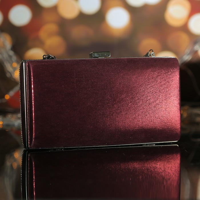 Клатч женский, отдел на фермуаре, длинная цепь, цвет бордовый