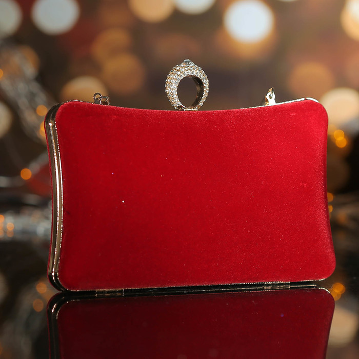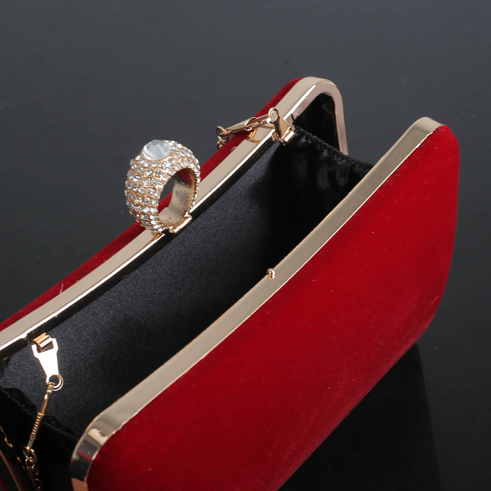 Клатч женский, отдел на фермуаре, длинная цепь, цвет бордовый