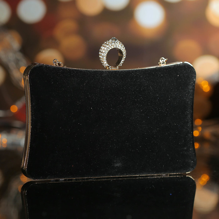 Клатч женский, отдел на фермуаре, длинная цепь, цвет чёрный