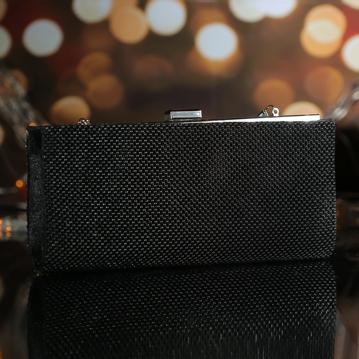 Клатч женский, отдел на фермуаре, длинная цепь, цвет чёрный