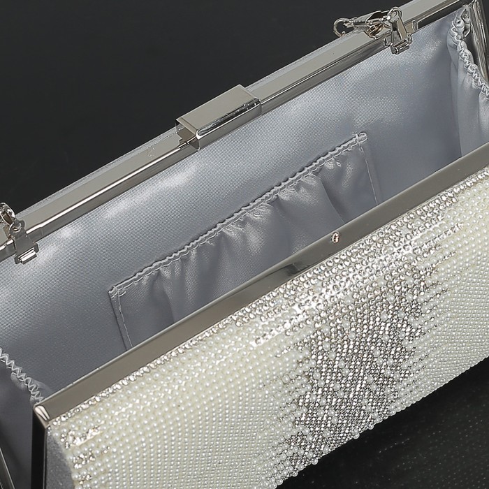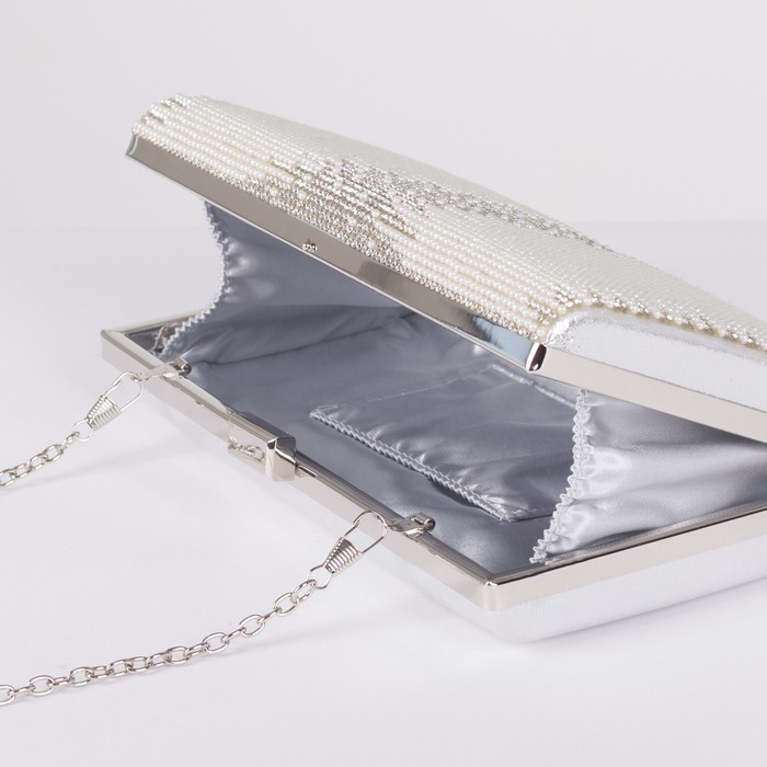 Клатч женский, отдел на фермуаре, длинная цепь, цвет серый