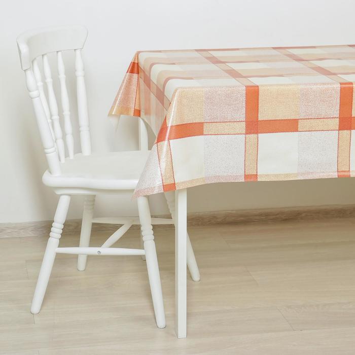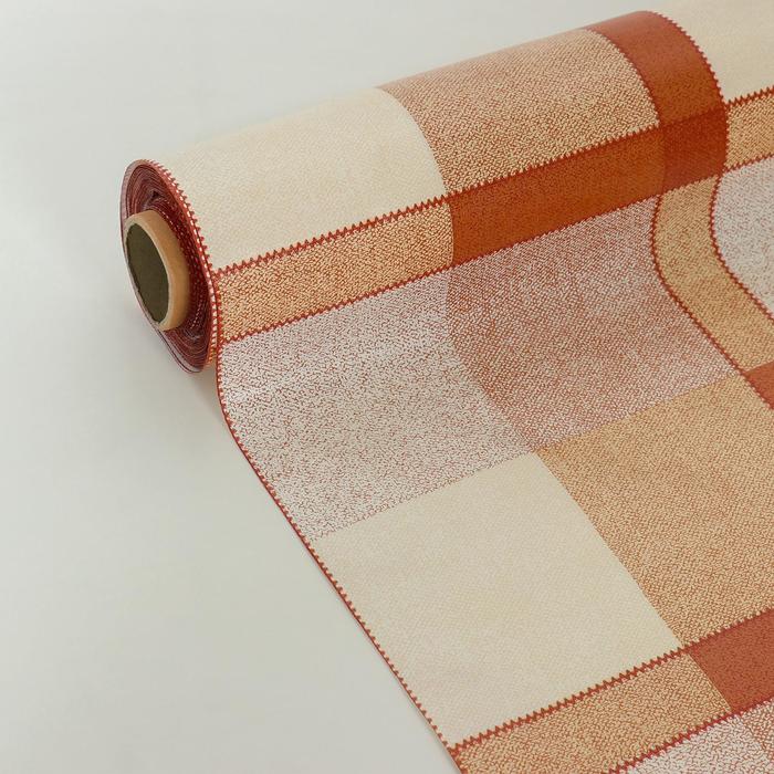 Клеенка столовая на ткани, ширина 125 см "Клетка бежевая", рулон 25 м
