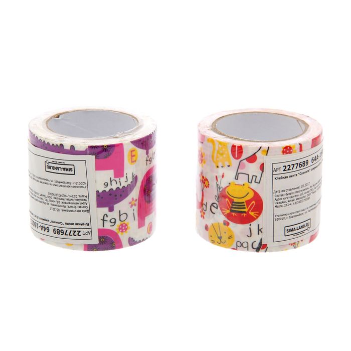 Клейкая лента бумажная "Слонята", 5 м, ширина 4.8 см, МИКС