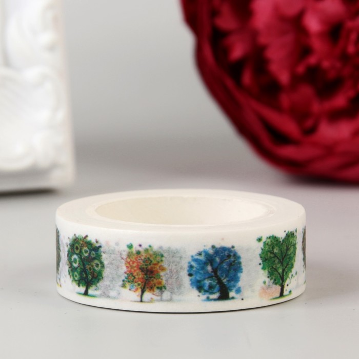 Клейкая лента декоративная бумажная "Деревья" ширина 1,5 см намотка 10 метров