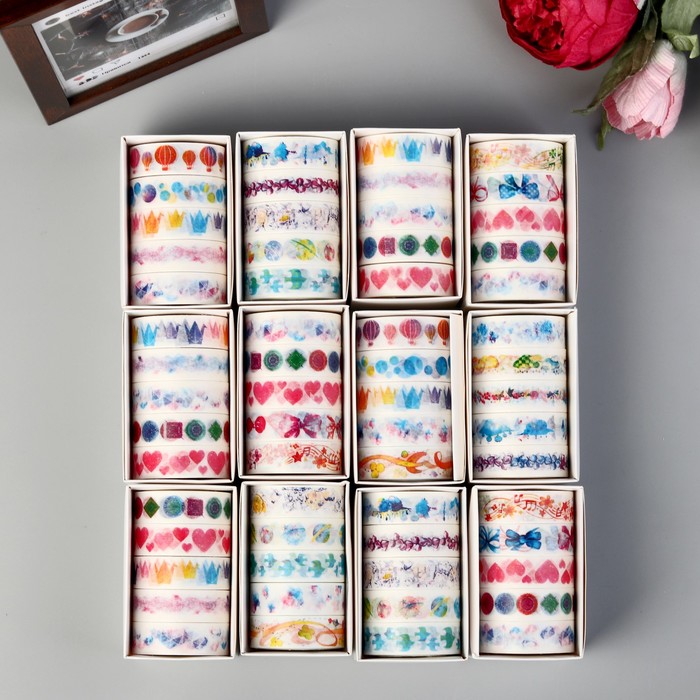 Клейкая лента декоративная бумажная "Коронация" ширина 1,5 см намотка 10 метров МИКС