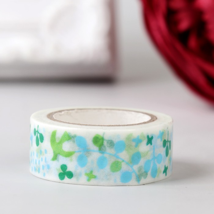 Клейкая лента декоративная бумажная "Листья" ширина 1,5 см, длина 5 метров