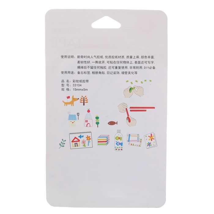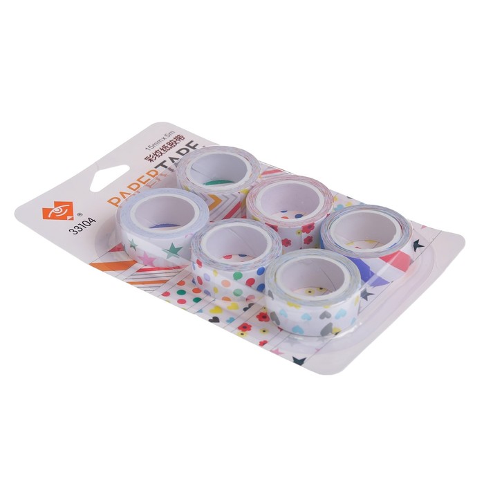 Клейкая лента декоративная бумажная "Рисунки на белом" (набор 6 шт) 1,5 см 5 метров МИКС