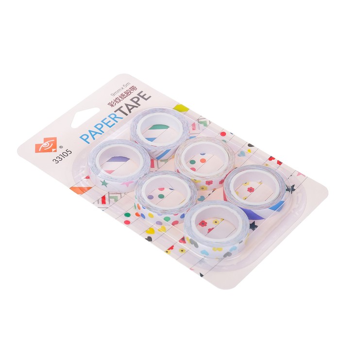 Клейкая лента декоративная бумажная "Рисунки" (набор 6 шт) 0,9 см 5 метров