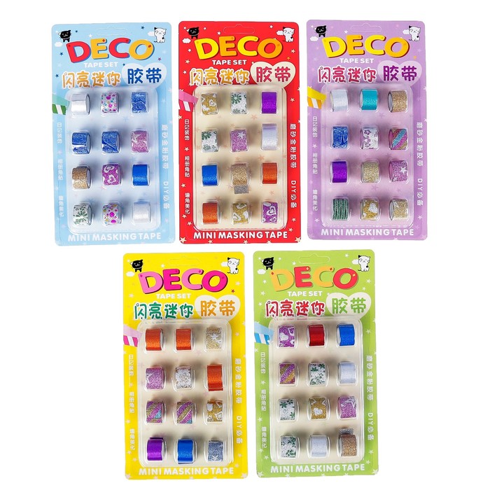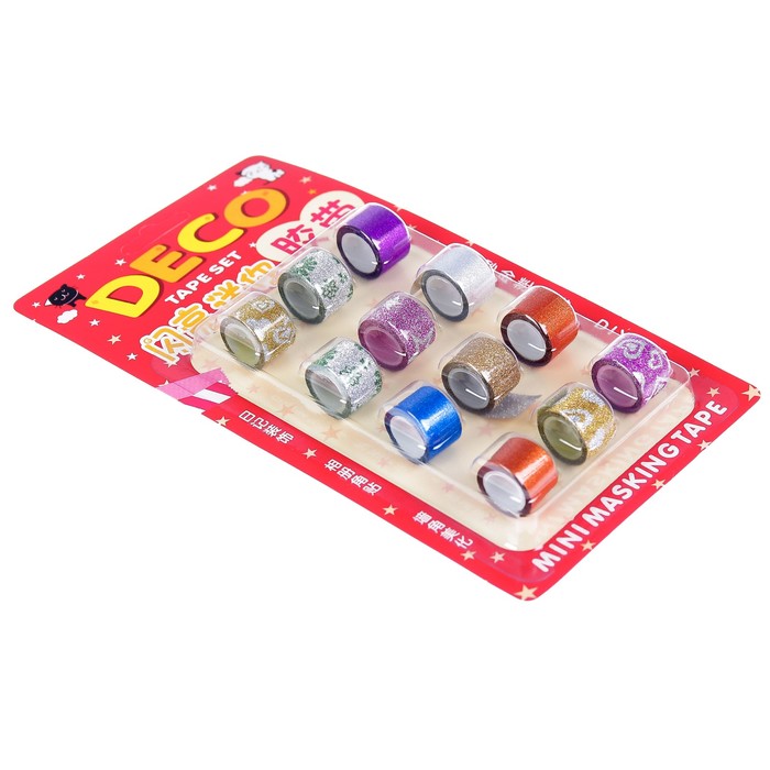 Клейкая лента декоративная пластик "Ассорти" набор 12 шт 1,2 см 1 м МИКС 18,5х10х2 см