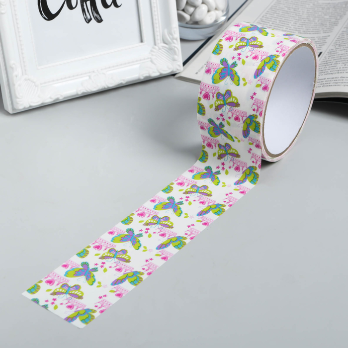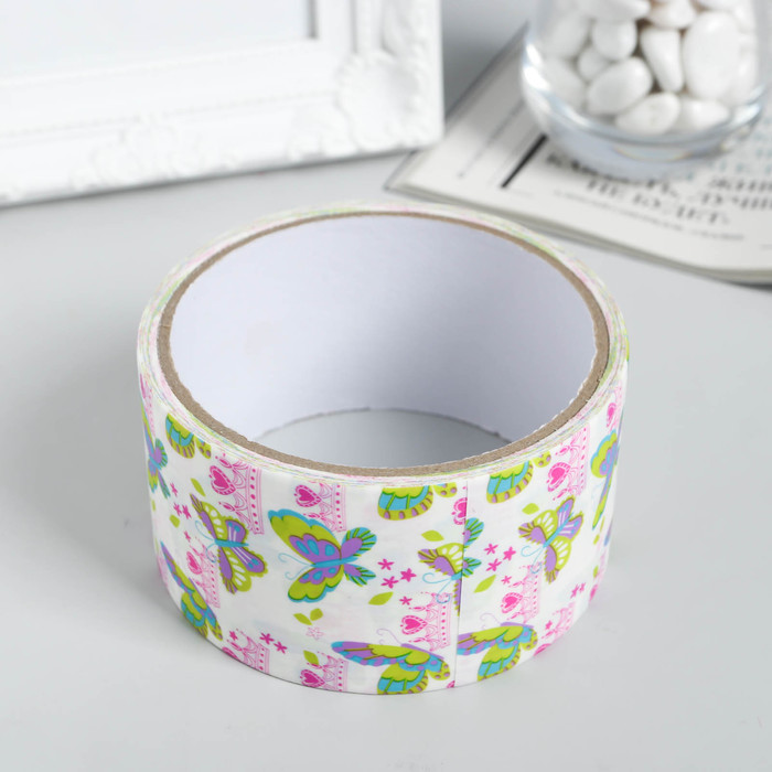 Клейкая лента декоративная пластик "Бабочки и короны" ширина 4,8 см намотка 5 метров
