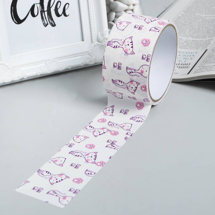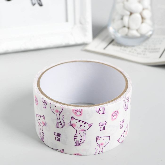 Клейкая лента декоративная пластик "Кошечка" ширина 4,8 см намотка 5 метров