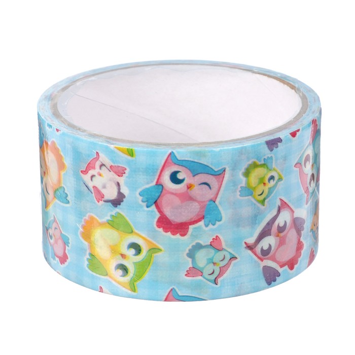 Клейкая лента декоративная пластик "Совушки" ширина 4,8 см намотка 5 метров