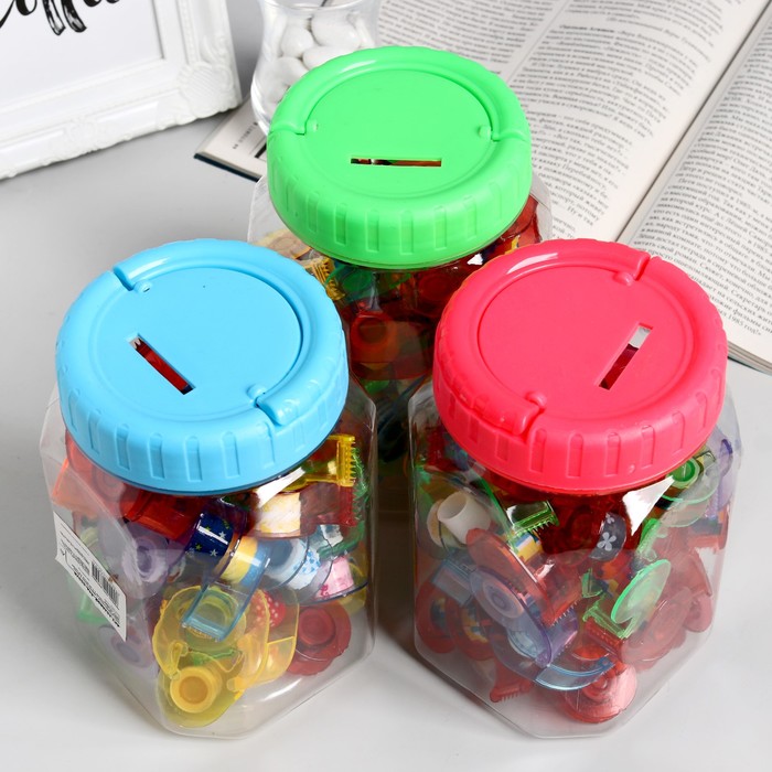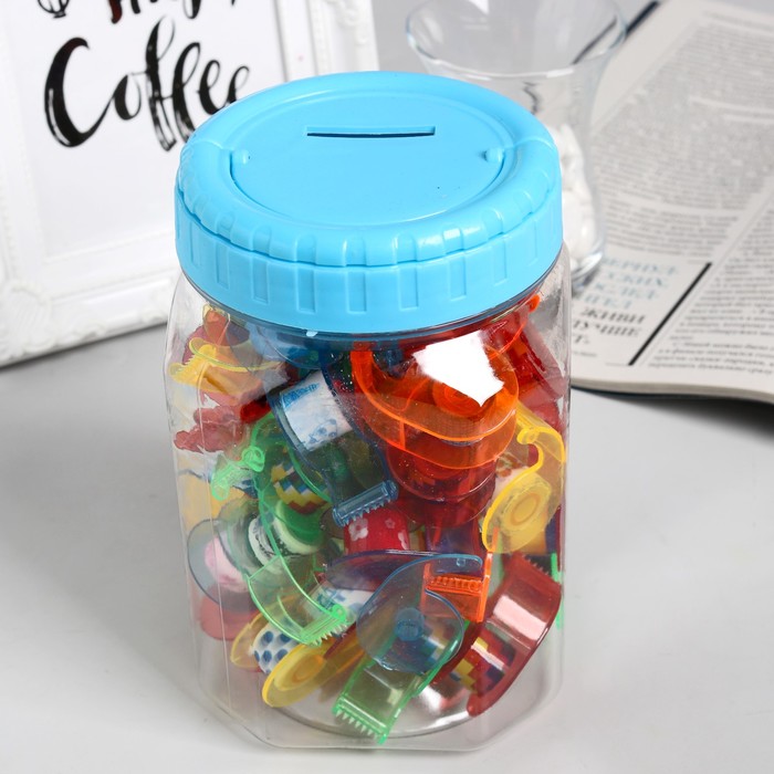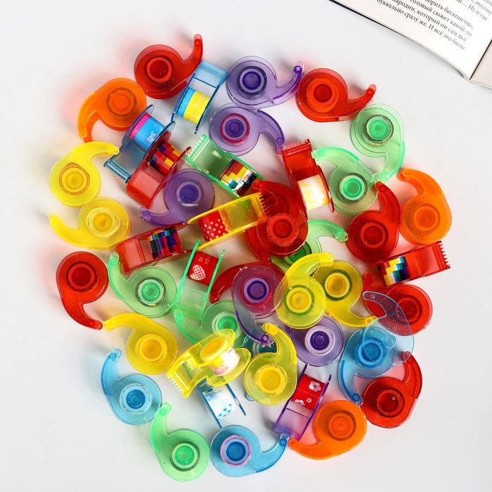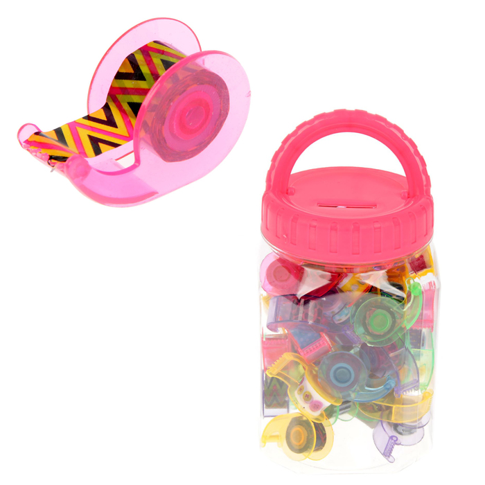 Клейкая лента декоративная с держателями в банке (набор 45 шт) ширина 1,2 см длина 2,8 метра МИКС