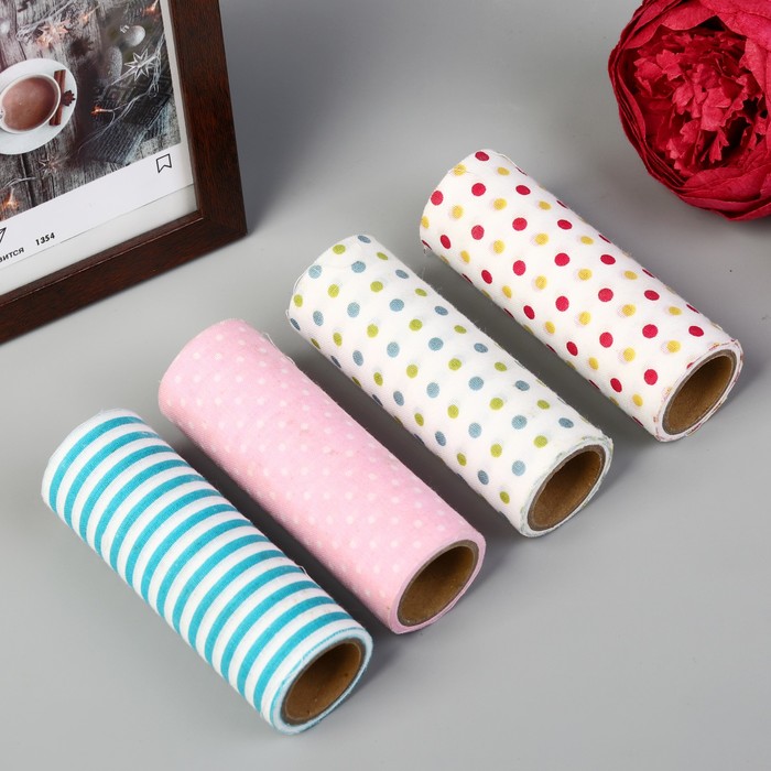 Клейкая лента декоративная текстиль "Полоски и горох" ширина 10 см намотка 1,4 м МИКС