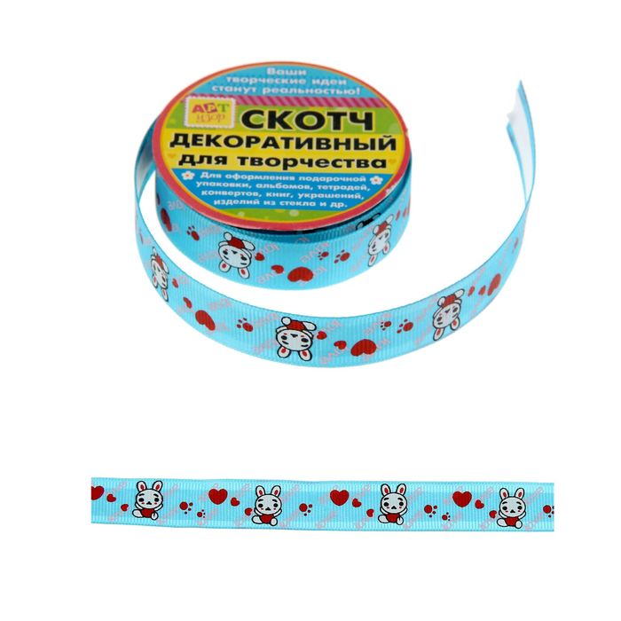 Клейкая лента декоративная текстильная "Зайчата", дл. 1 м, ш. 1.5 см, МИКС