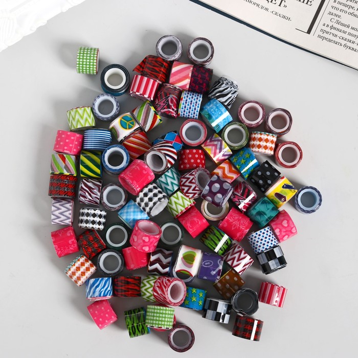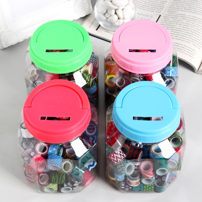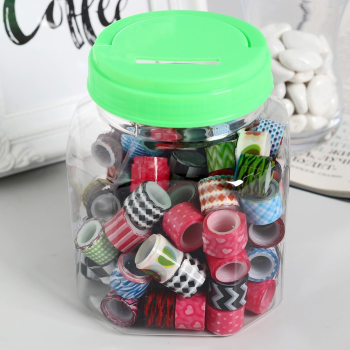 Клейкая лента декоративная в банке (набор 90 шт) ширина 1,2 см длина 2,8 метра МИКС