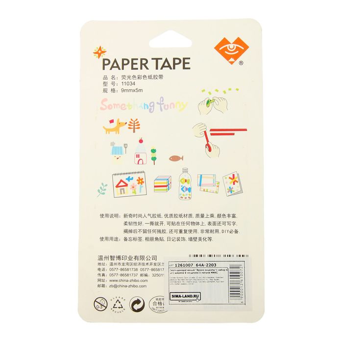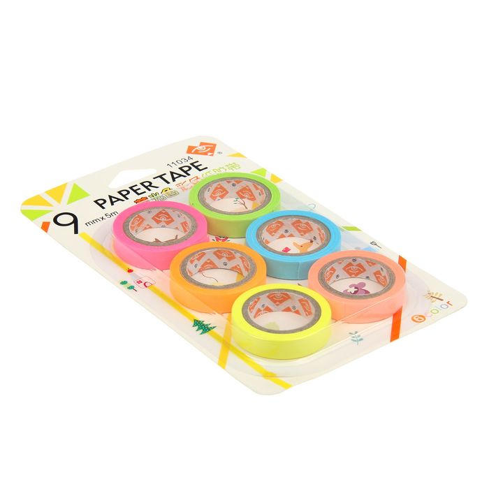 Клейкая лента декоративная "Яркие акценты" (набор 6 шт.), ширина 9 мм, длина 5 м