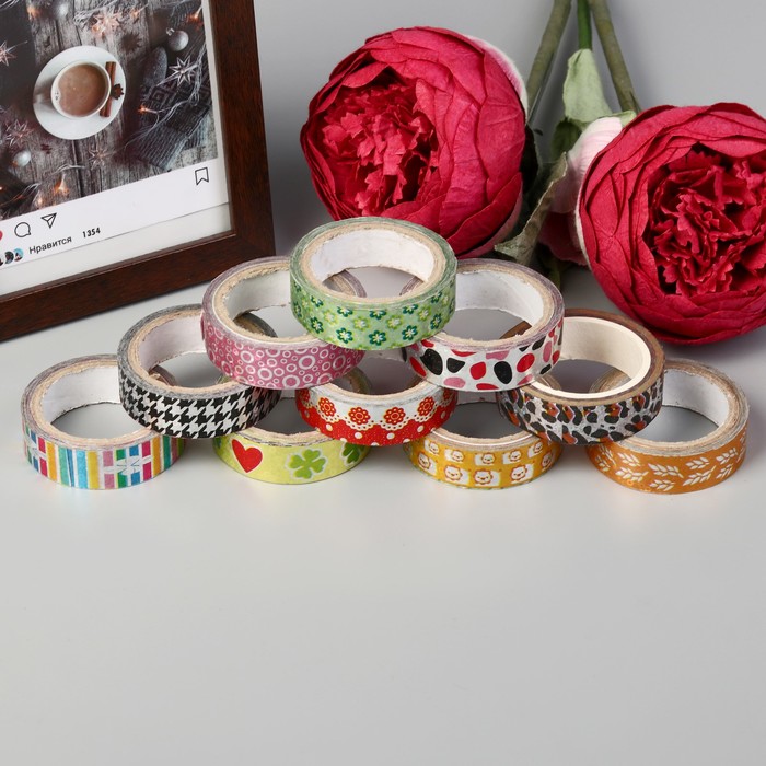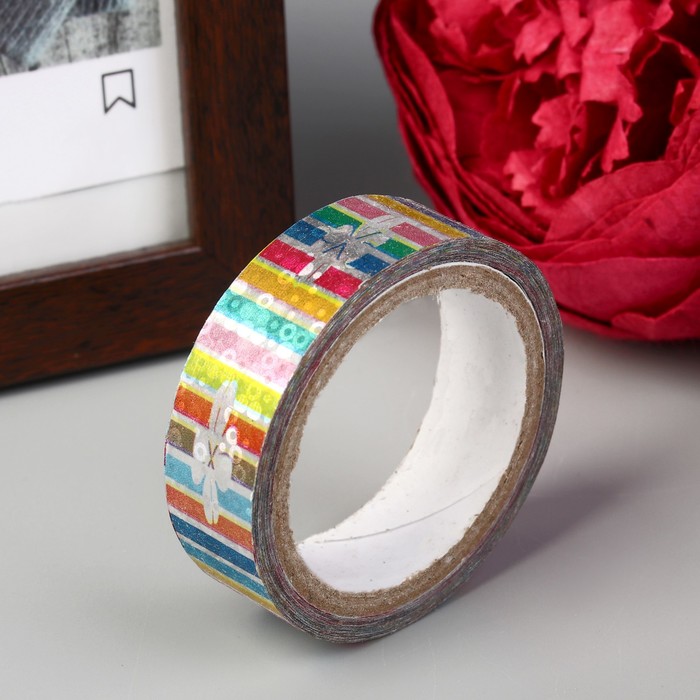 Клейкая лента для декора "Картинки", голография, намотка 10 м, ширина 1.5 см, МИКС