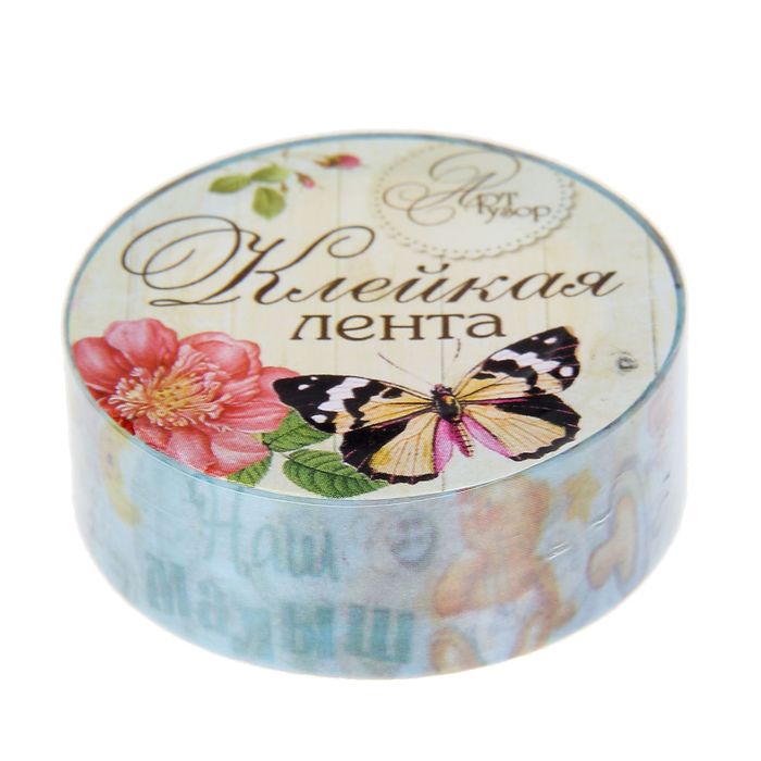 Клейкая лента на бумажной основе "Наш малыш", 1,5 см х 10 м применяется при создании открыток и альбомов ручной работы, она незаменима при упаковке подарков, оформлении букетов, а также декоре повседневных вещей (тетради, блокнота или других предметов). Лента приклеивается к любой поверхности, придавая ей праздничное настроение.