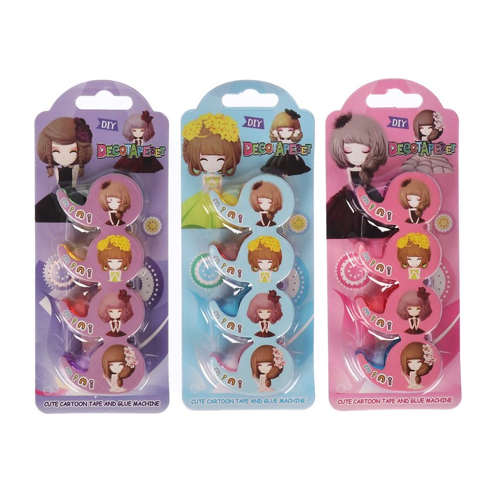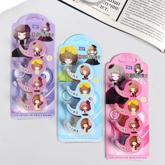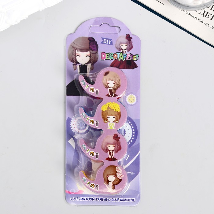 Клейкая лента пластик "Девочки" набор 4 шт длина 2 метра + держатель 4 шт МИКС 16х6,5х1,5см