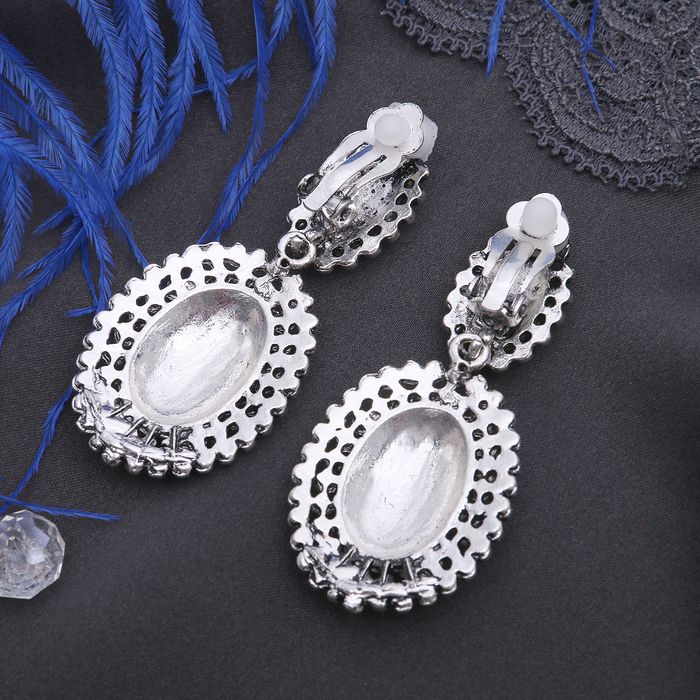 Клипсы "Овал" двойной, миледи, цвет белый в чернёном серебре