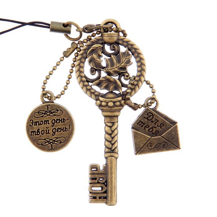 На ключике указан день и месяц, а на стержне красуется надпись «Счастья» и висит брелок с пожеланиями.
