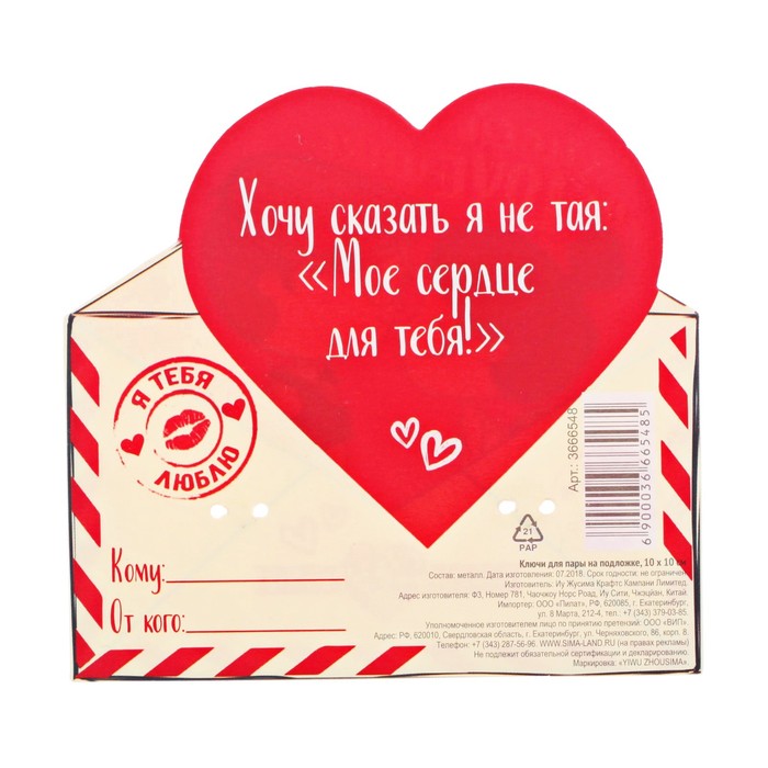 Ключи для пары на подложке "Моей поLoveинке", 10 х 10 см