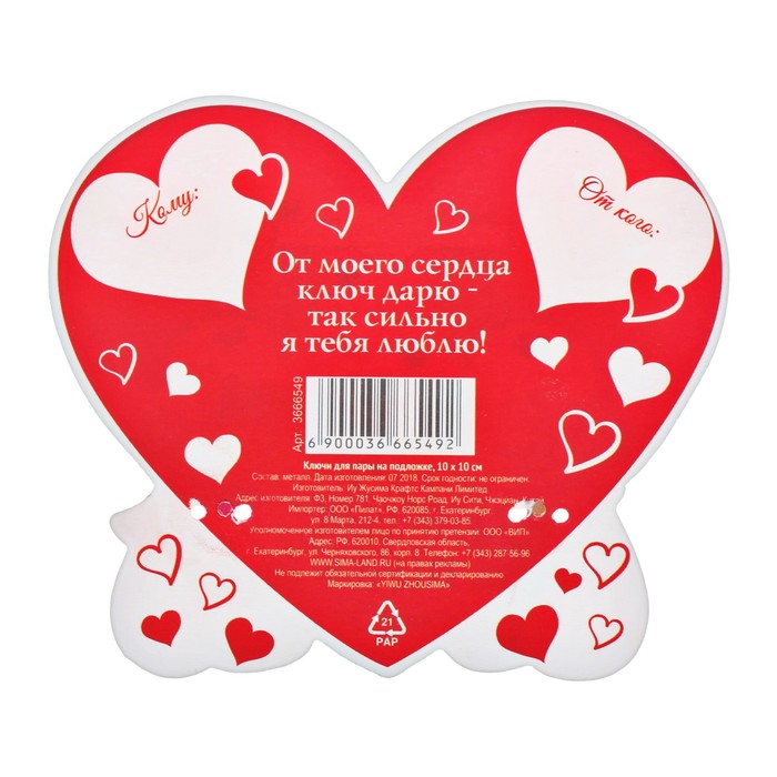 Ключи для пары на подложке "Ты для меня", 10 х 10 см