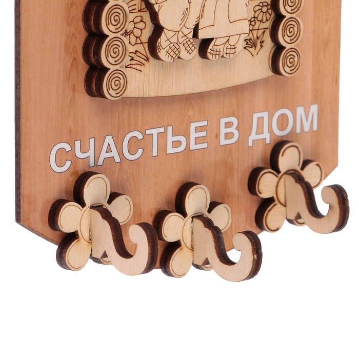 Ключница открытая фанера "Пара у дома. Счастье в дом" 13х16 см