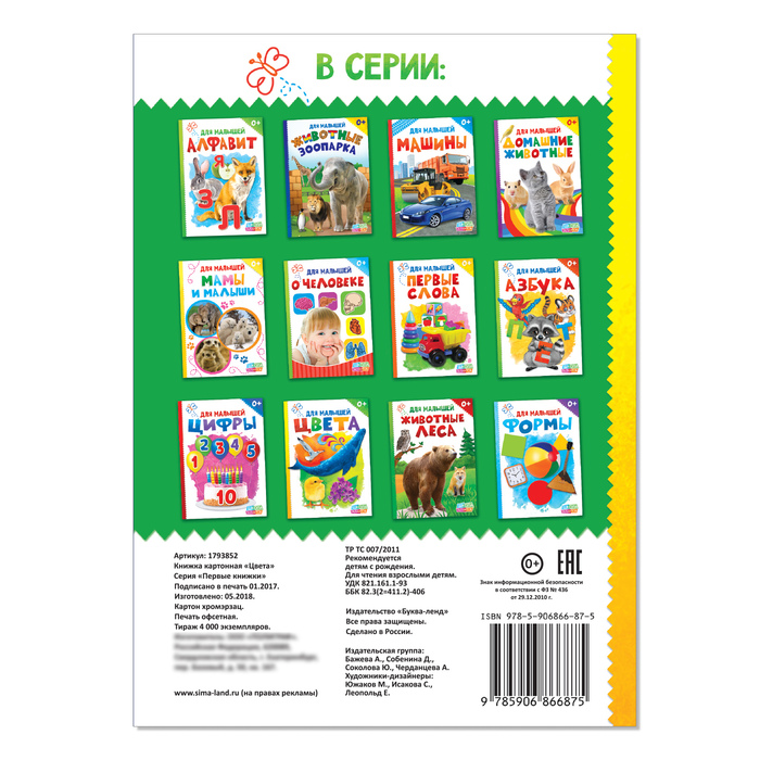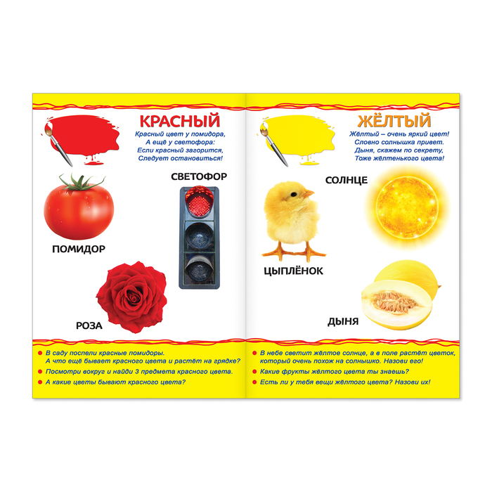 Издание «Цвета» отличается ярким дизайном, красочными картинками, которые объединены по оттенкам, и добрыми стишками — вместе они делают обучение ещё более увлекательным! На каждой странице есть дополнительные задания, помогающие развивать мышление маленького непоседы.