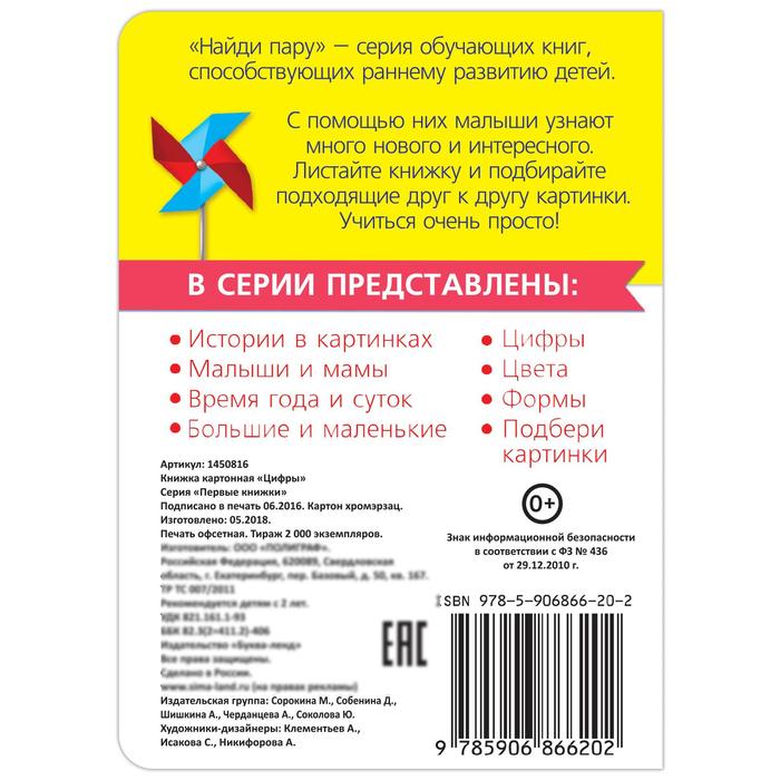Находить сходства — один из базовых принципов развития мышления и логики малышей. Именно на этой основе создана серия книг «Найди пару», странички которых разрезаны пополам. Ребёнок выбирает картинку с одной стороны и ищет ей пару, листая странички с другой. Например, к цифре три нужно найти изображение с тремя предметами.
