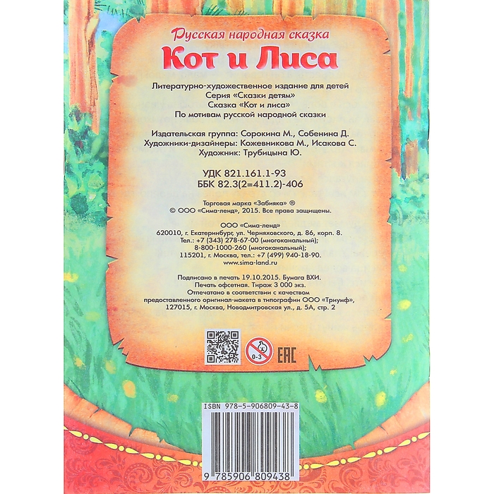 Книга "Кот и лиса", русская народная сказка, 12 страниц