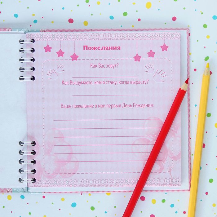 Дорогие сердцу пожелания на день рождения, увы, часто хранятся на неудобных носителях, теряются или забываются. Чтобы вы смогли сберечь прекрасные поздравления, мы создали специальную книгу. Годы спустя малышка вместе с родителями прочтёт тёплые слова с огромной радостью.
