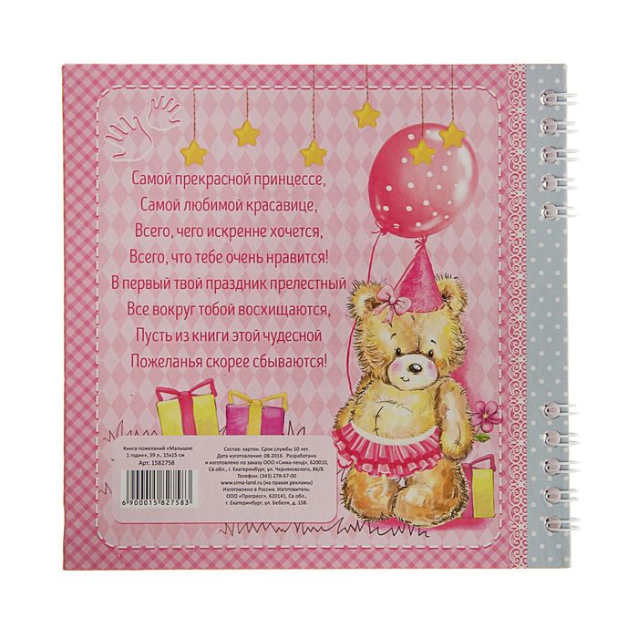 Книга пожеланий " Малышке 1 годик"