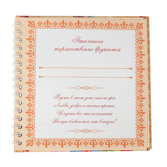 Книга пожеланий "Поздравляем" предназначена специально для гостей, которые хотят поздравить виновников торжества и оставить на память добрые наставления.