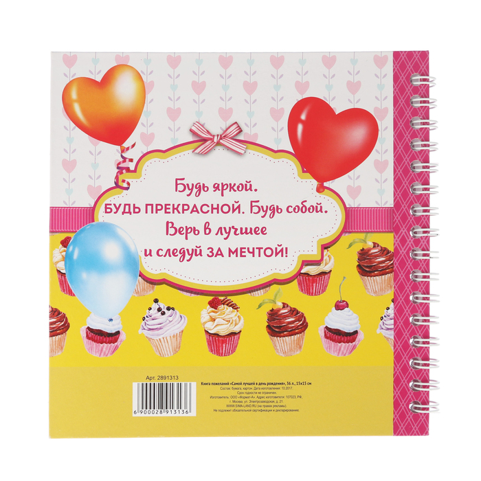 Книга пожеланий "Самой лучшей в день рождения" предназначена специально для гостей, которые хотят поздравить виновников торжества и оставить на память добрые наставления.