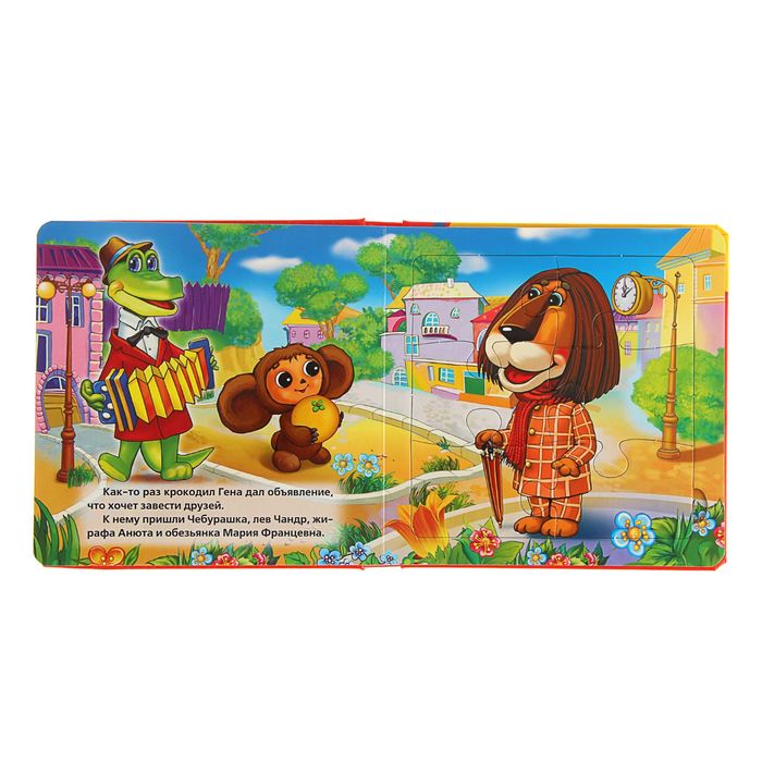 Книга с пазлами "Чебурашка и крокодил Гена", 6 пазлов на картинке
