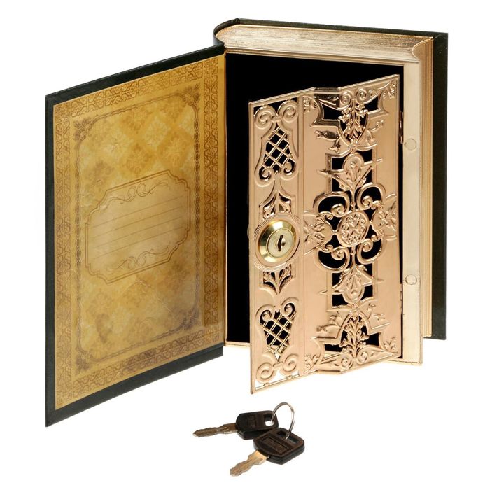 Книга-сейф — подарок для тех, кому есть что хранить. Её обложка выглядит правдоподобно, так что она не будет выделяться на полке в книжном шкафу и защитит накопления от посторонних глаз. Внутри расположен тайник, который надёжно запирается на замок.