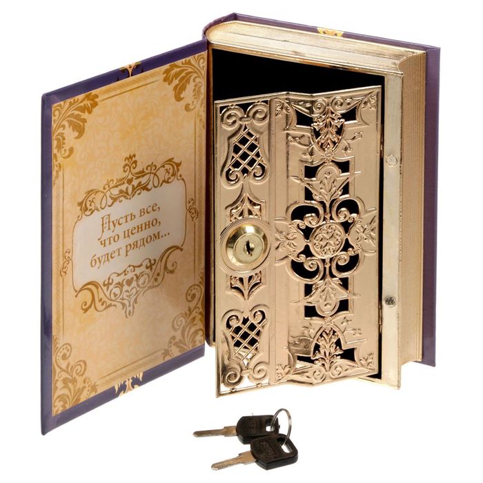 Книга-сейф — подарок для тех, кому есть что хранить. Её обложка выглядит правдоподобно, так что она не будет выделяться на полке в книжном шкафу и защитит накопления от посторонних глаз. Внутри расположен тайник, который надёжно запирается на замок.
