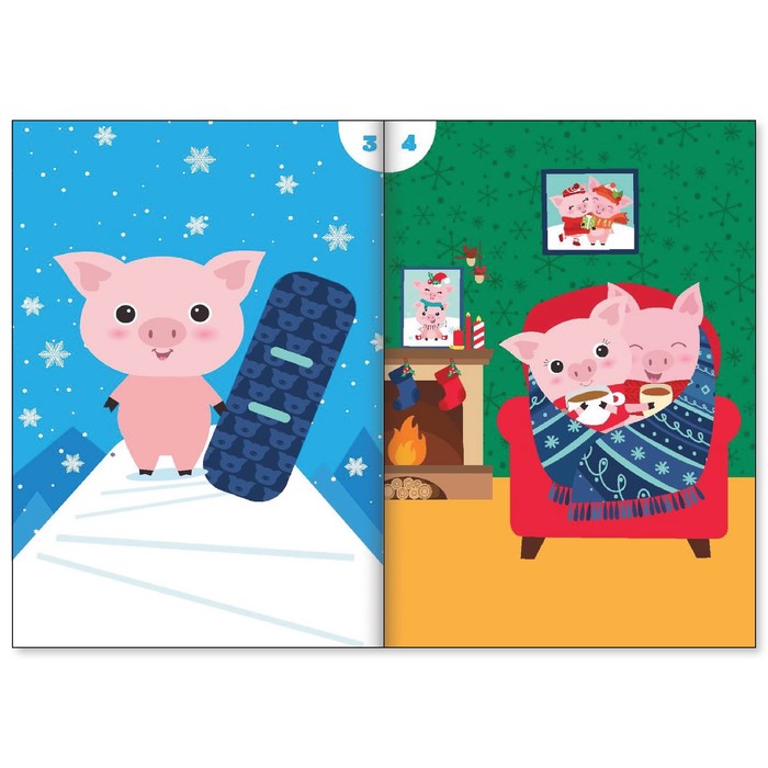 Книжка аппликация наклейками «Зима у поросят», 12 страниц