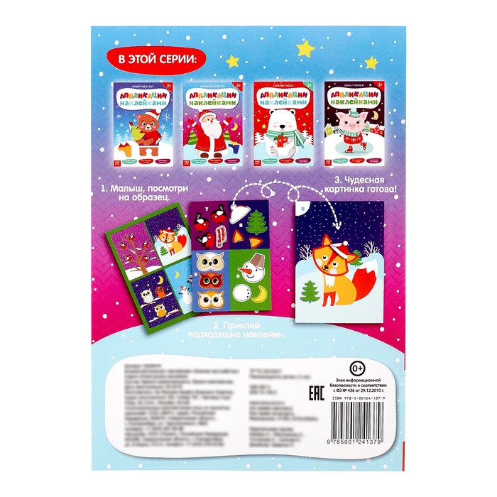 Книжка аппликация наклейками «Зимнее волшебство», 12 страниц