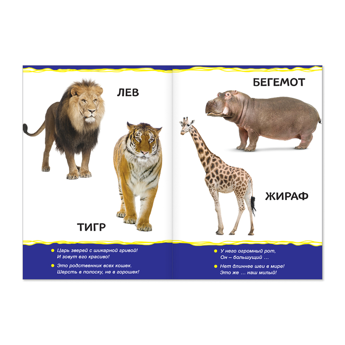 В издании «Животные зоопарка» картинки настолько красочные, что кроха с большим удовольствием будет изучать зверей и их названия, а занимательные стишки-загадки сделают процесс чтения ещё увлекательнее!
