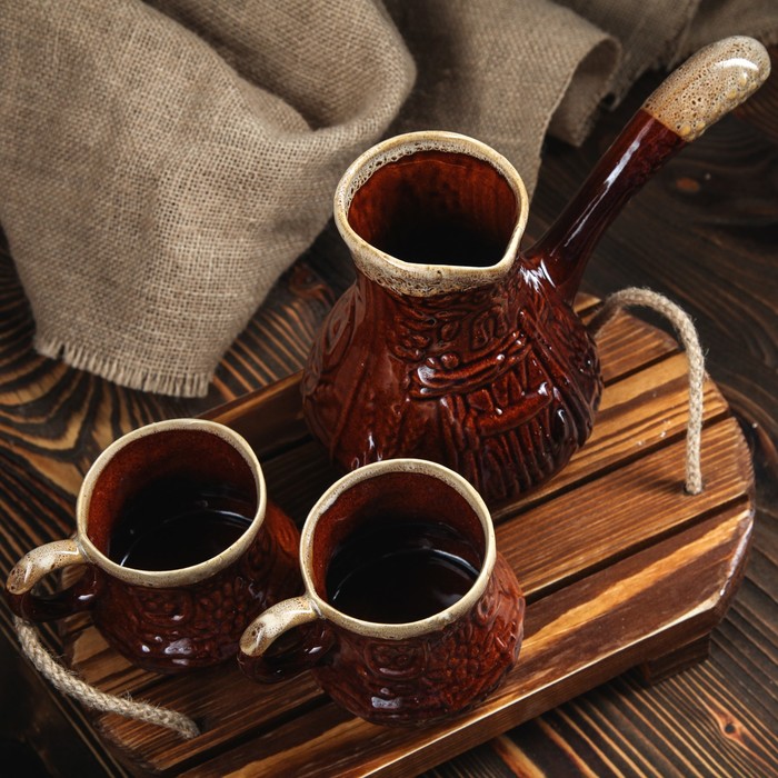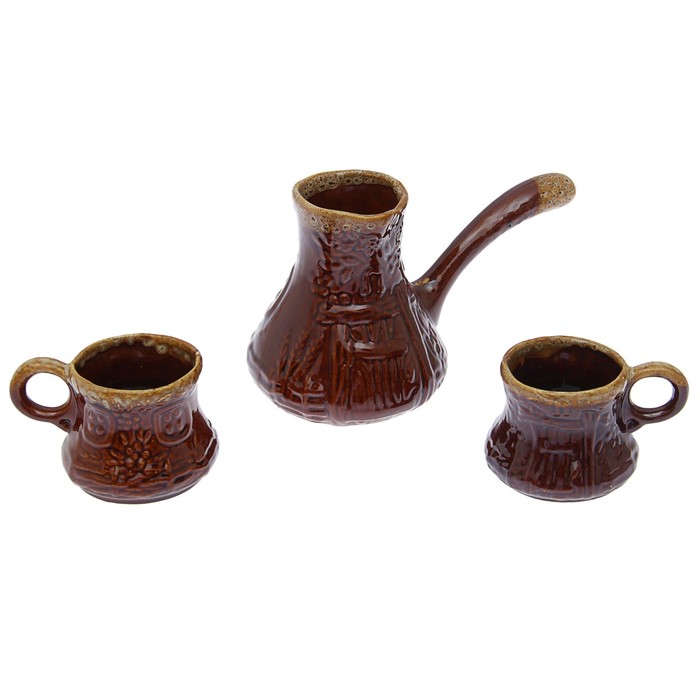 Кофейный набор 3 предмета, турка 0,5 л и 2 чашки 0,25 л
