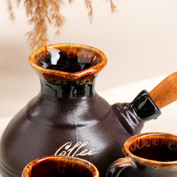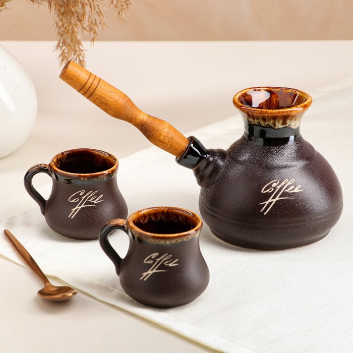 Кофейный набор 3 предмета: турка средняя 0,4 л, 2 чашки 0,1 л